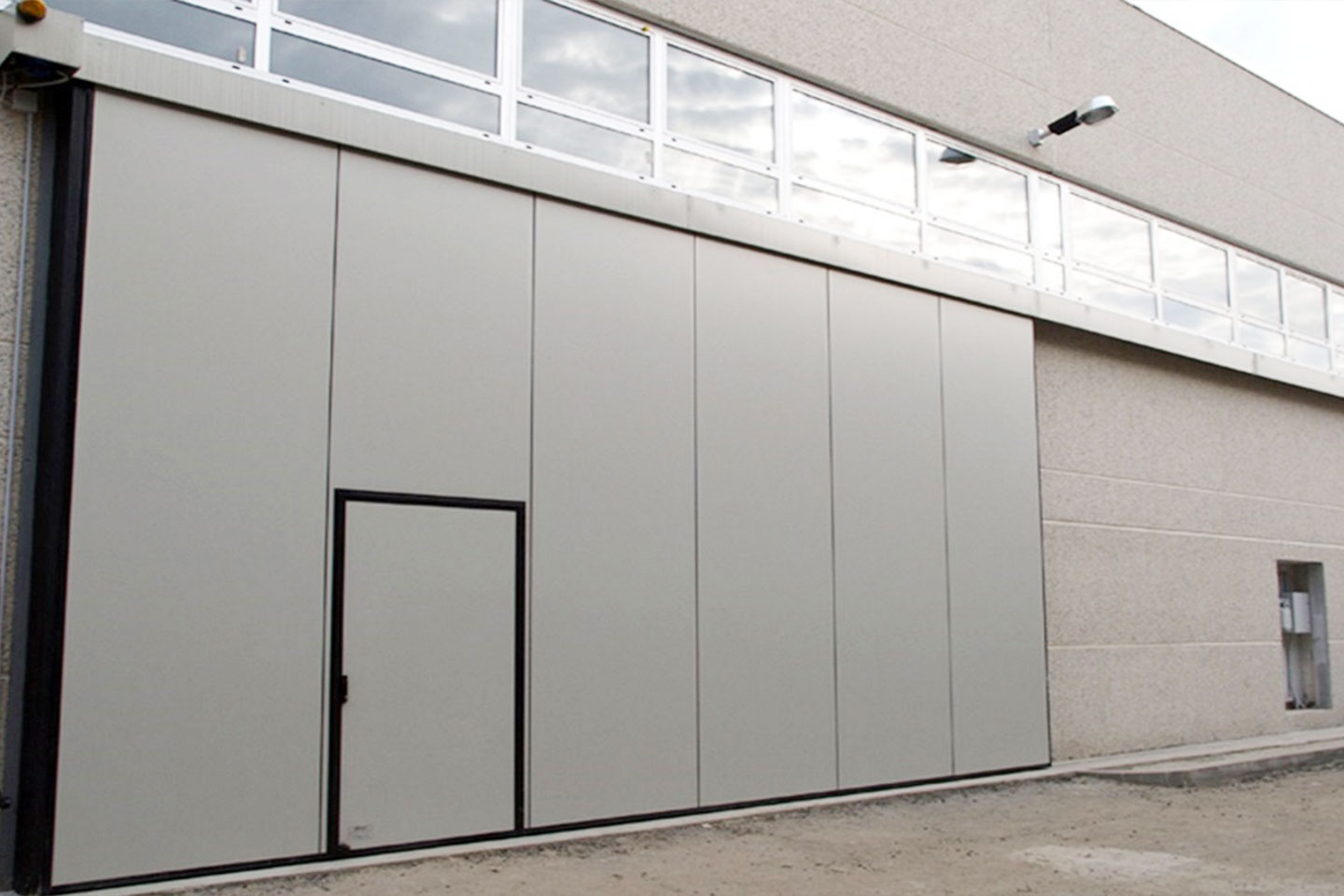 Porta pedonale inserita nel pannello con o senza inciampo con serratura o maniglione antipanico.